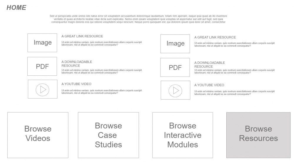 Wireframing is a great way for a client to see what a rough outline of their website or elearning course may look like. Typically, wireframing is used in web design to show what interface elements will exist on a website and is an early, visual version of the site. But it can also be used to demo what an elearning project will look like.
