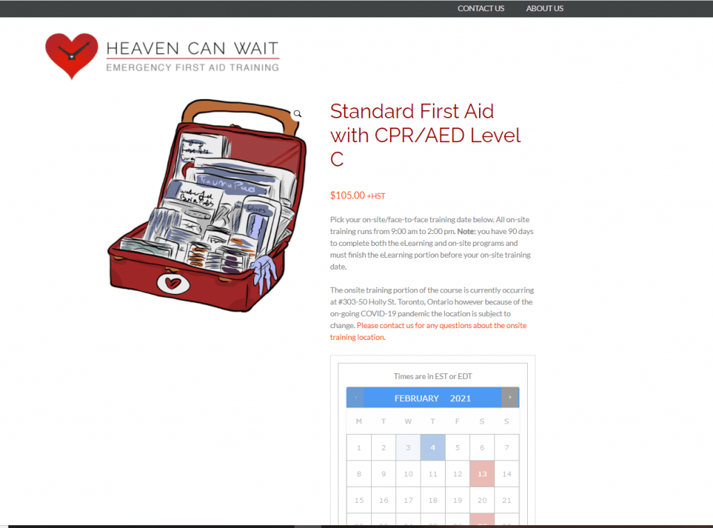 We also set up eCommerce capabilities on the Heaven Can Wait website for bookings. Users can purchase from a selection of nine different online courses and book their in-person training sessions at the time of checkout as well.