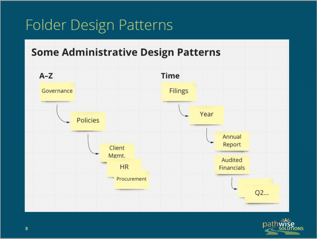 Whether you use cloud storage, Microsoft 365, or network shares, there are ways to name, organize, manage, secure, and share files and folders to help you locate what you need quickly and easily. This webinar looked at several techniques to help nonprofit agencies organize their files more effectively.