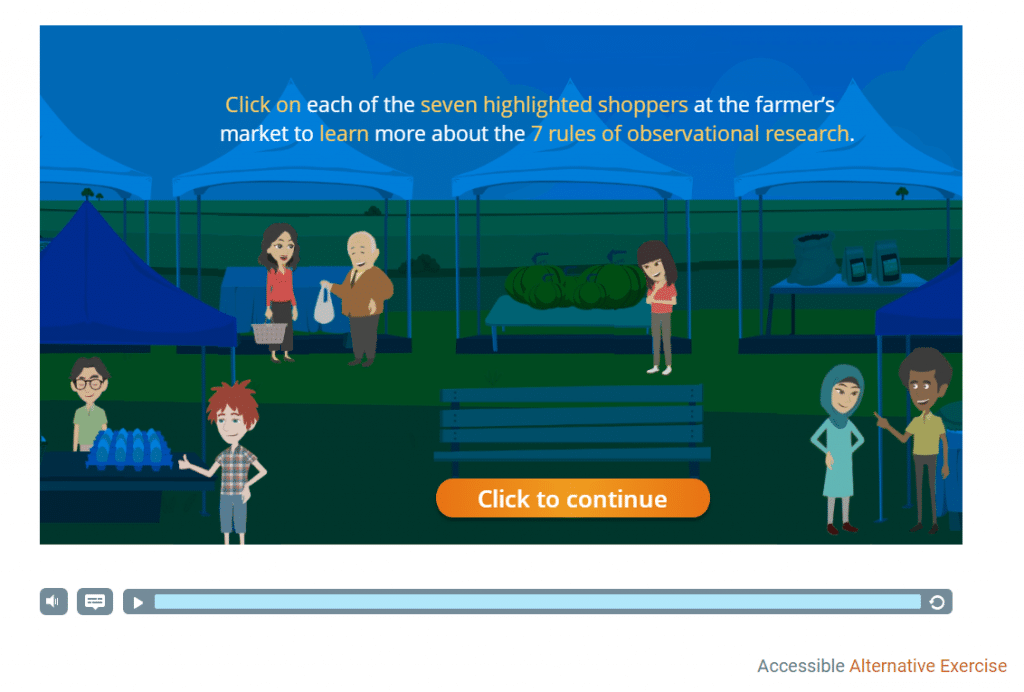 We are always very careful that the stories we choose to tell within our eLearning solutions don’t overshadow the course purpose, learning outcomes, or learner needs.